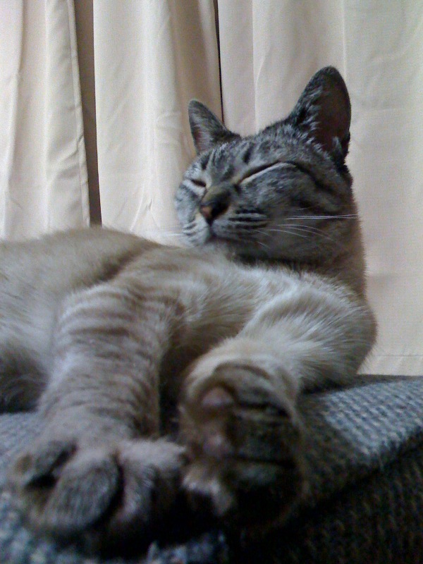 日向ぼっこのお昼寝タイムですね♪ゴハンの夢を見てたりして(>3<)つ