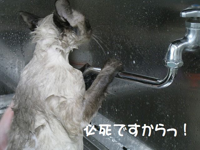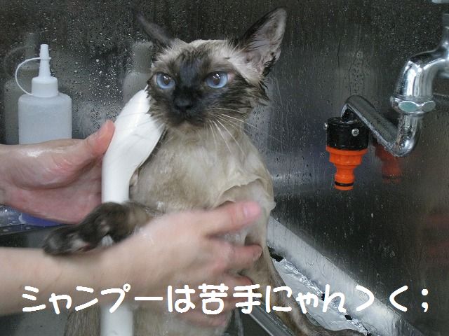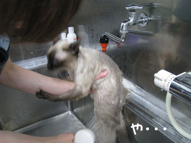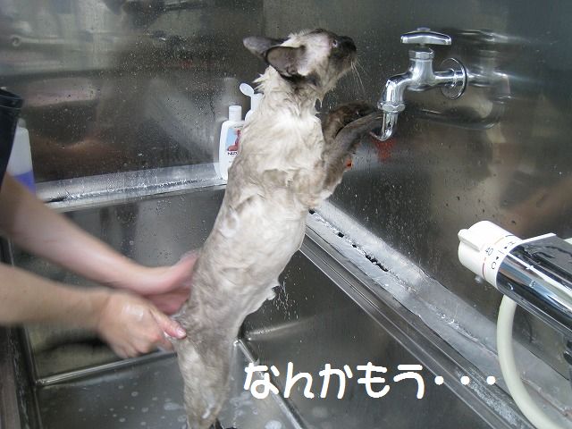 「にゃんちゃんが私のシャンプーはいつ?って聞いてたよ」 「ほんと?じゃ、今日しちゃおっか!」 猫バカ二人の会話でピノコちゃんのシャンプーが決定(笑) それでもギャーギャー泣きわめいたり、暴れ倒したりなんてことは全くない おりこうニャンコのピノコちゃんでした(・∀・) このあとドライヤーですっかりフワフワニャンコになりました! ふと足元を見ると・・・ なんかいました(笑) その奥にもシャンプーすると落ち込む彼がいました(笑)