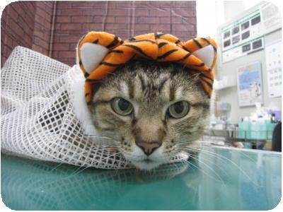 健診後、写真を撮る為にトラに変身です